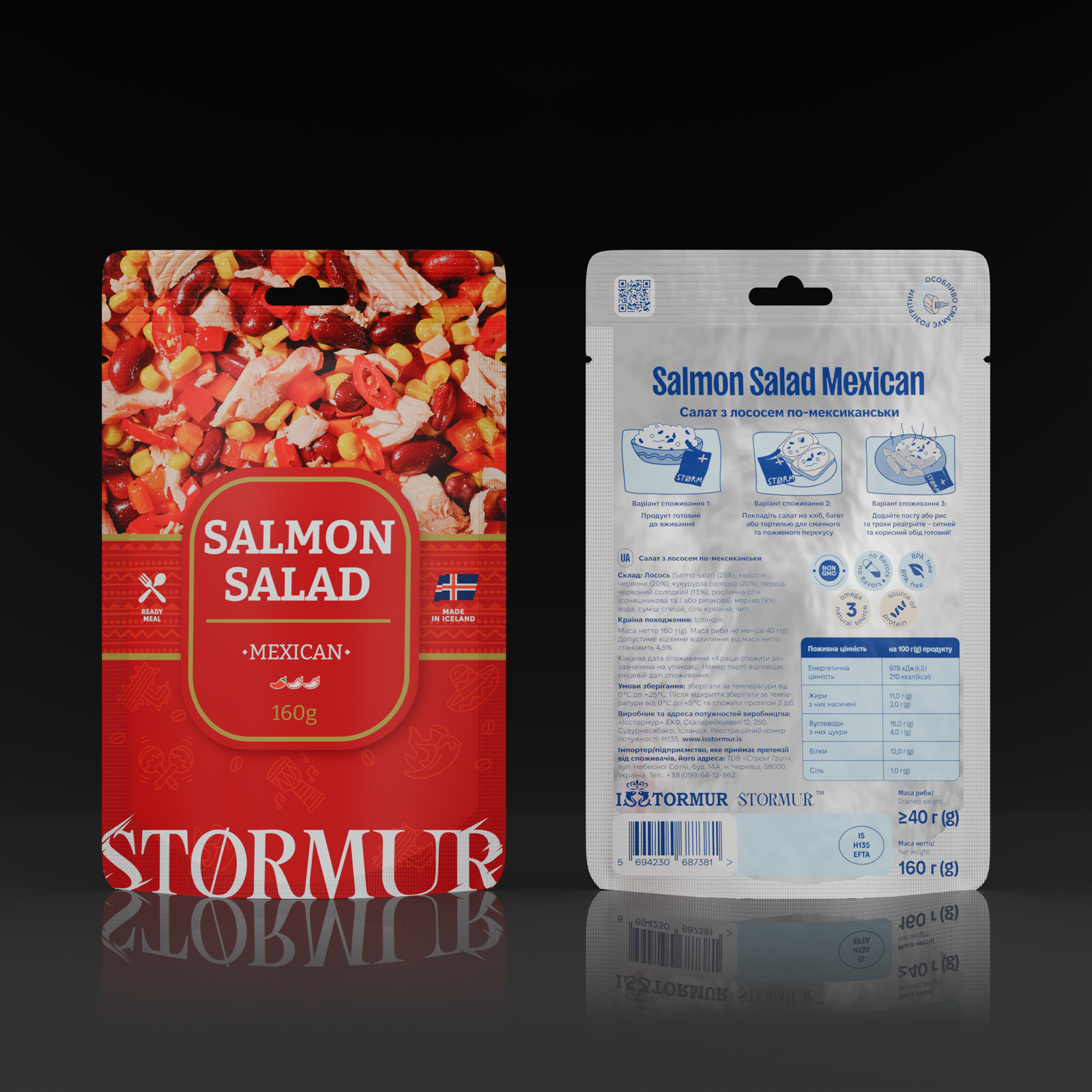 • Поєднання преміального лосося з червоною квасолею, солодкою кукурудзою, болгарським перцем і чилі — яскравий мексиканський салат;