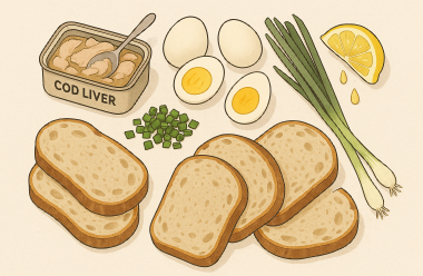 Підготуйте печінку: Злийте олію з консервованої печінки тріски та розімніть її виделкою.